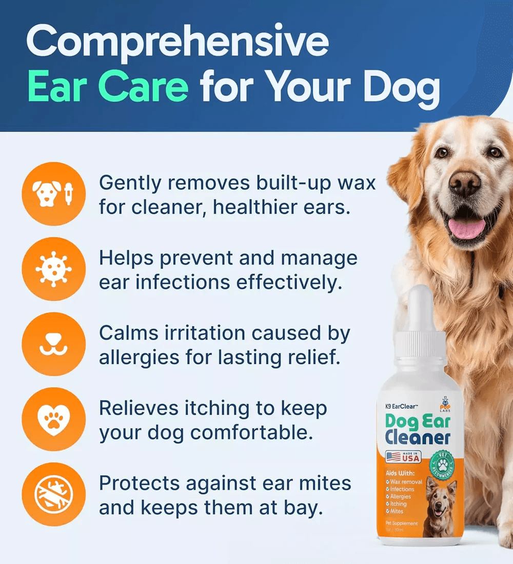 K9 EarClear uses a unique, natural formula that gently dissolves and removes built-up ear wax while creating an environment that helps prevent infections. Its natural ingredients help calm irritation from allergies, provide immediate itch relief, and create a protective barrier against ear mites.With regular use, K9 EarClear maintains cleaner, healthier ears and prevents discomfort that leads to scratching and head shaking.