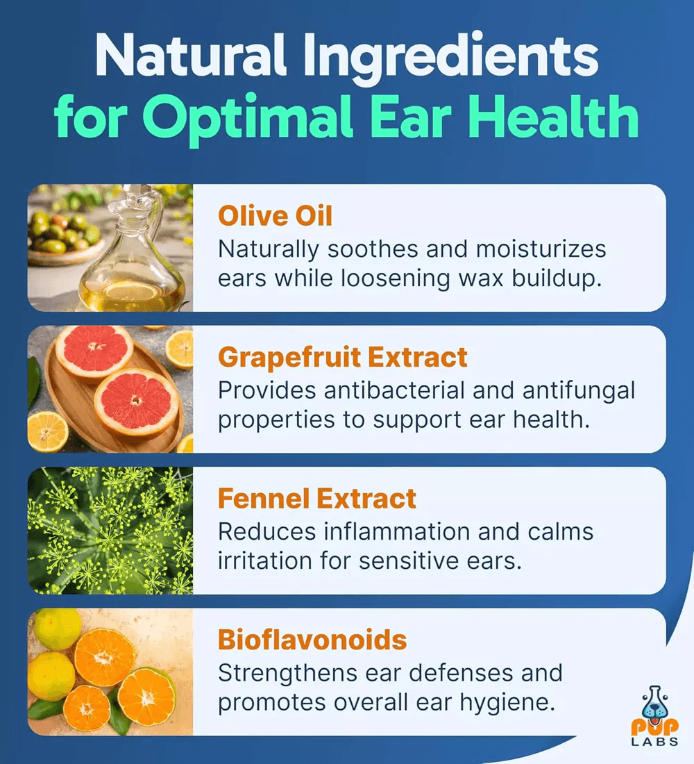 This powerful yet gentle ingredient works naturally to dissolve hardened wax deposits on contact, while helping soothe and protect your dog's sensitive ear tissue.